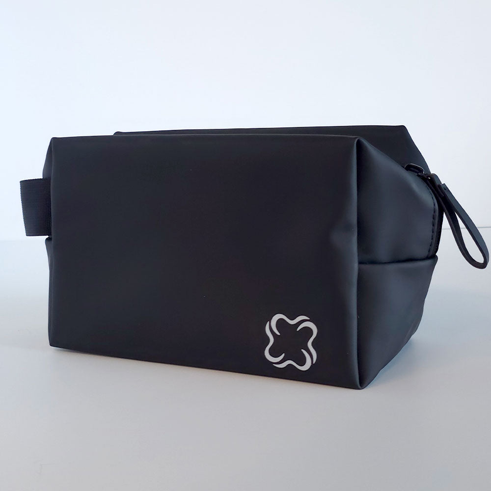 La compañera perfecta para tu día a día. Esta cosmetiquera de diseño minimalista es ideal para quienes buscan organización sin complicaciones. Su color negro atemporal y un solo compartimento espacioso te permiten guardar tus básicos de maquillaje o cuidado personal de forma rápida y segura.