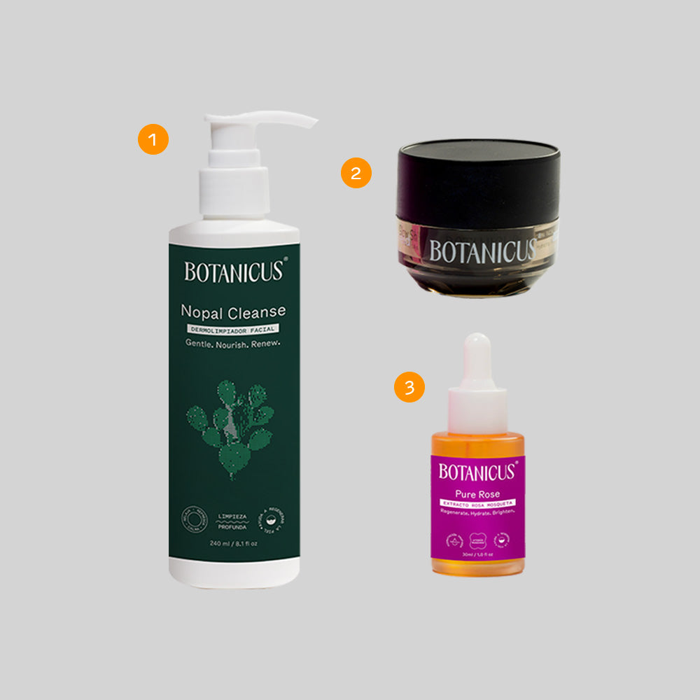 Incluye: Nopal Cleanse · Pure Rose · Glow Shield