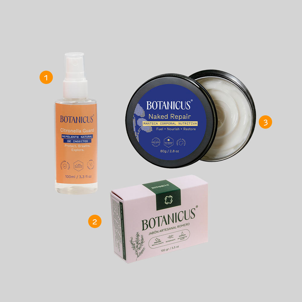 Protege, repara y limpia después de cada aventura. El kit botánico para el estilo de vida activo y al aire libre.