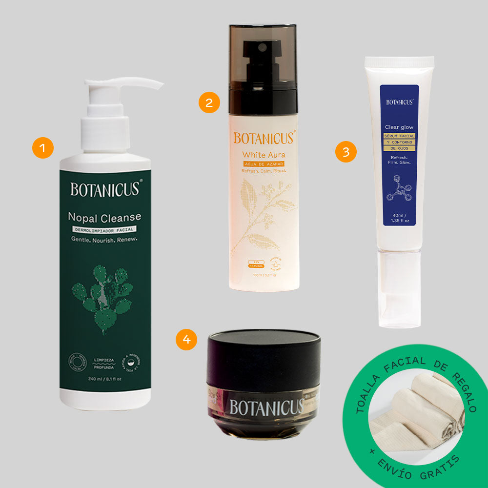 Incluye: Nopal Cleanse · White Aura · Clear Glow · Glow Shield. (1 pieza por producto)